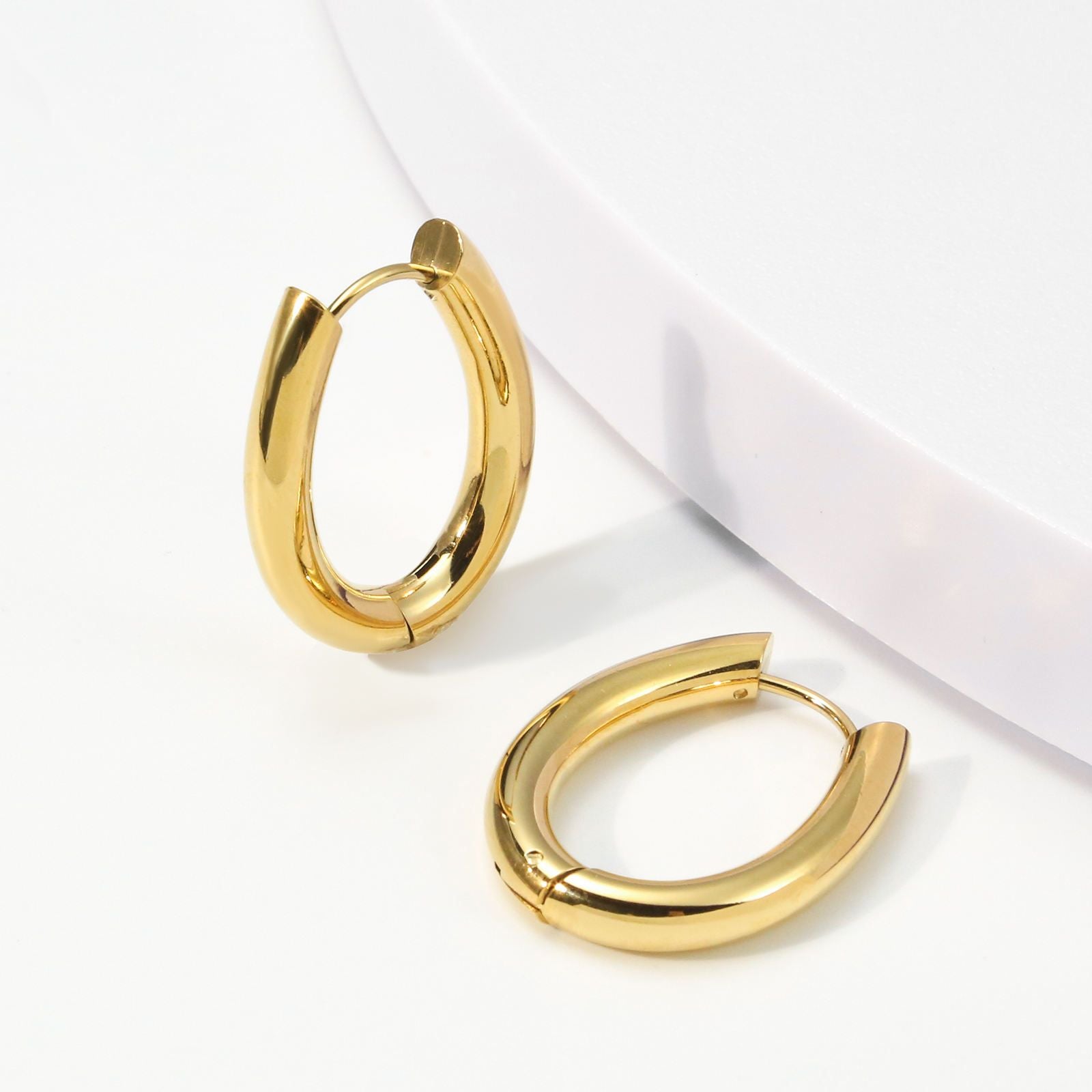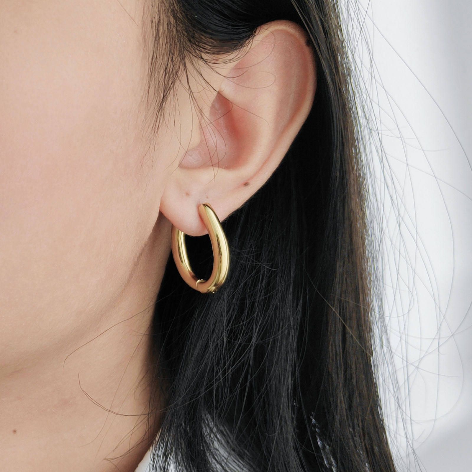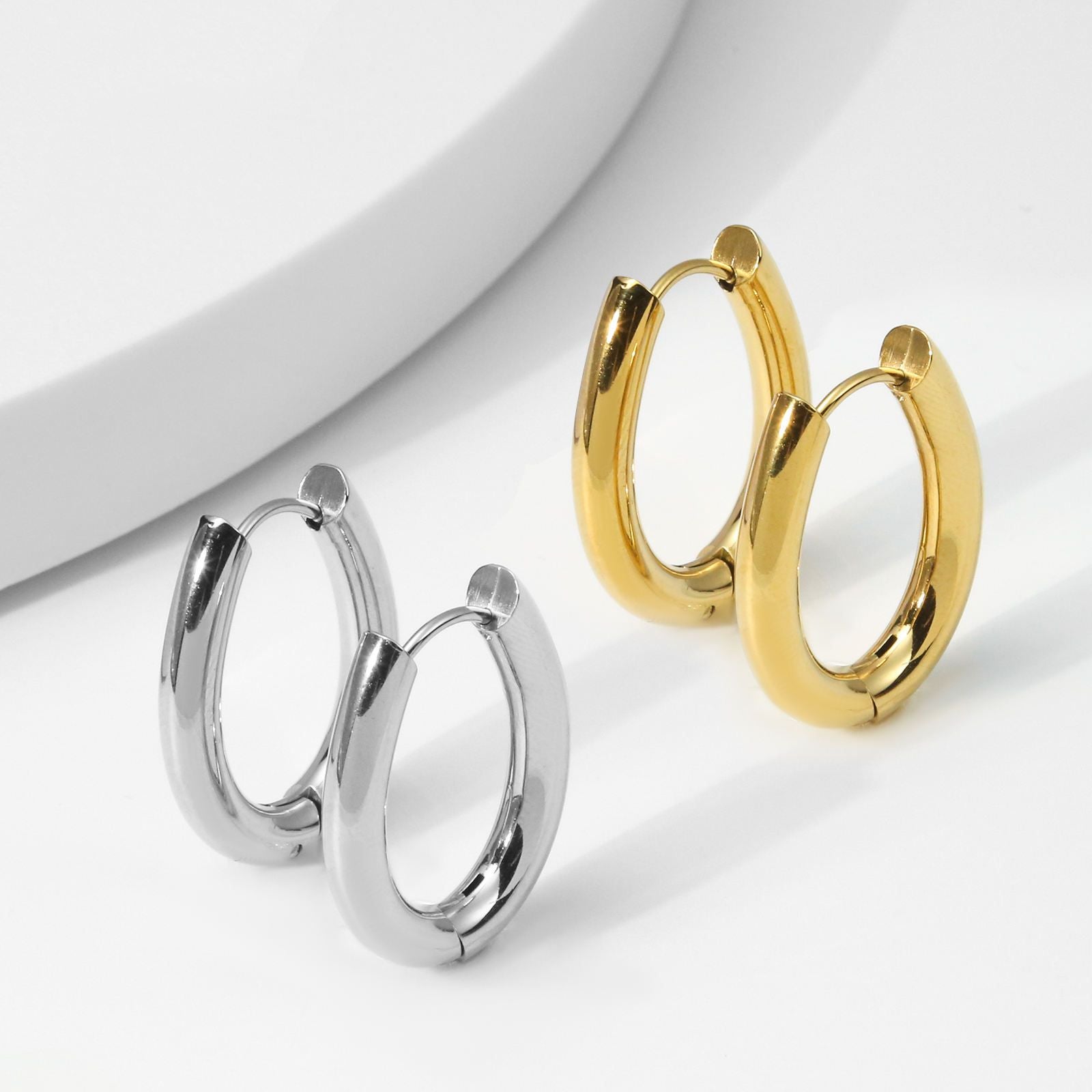 Pendiente Acero Inoxidable con Acabado en Baño Oro o Plata. Aro con Pasador Huggie